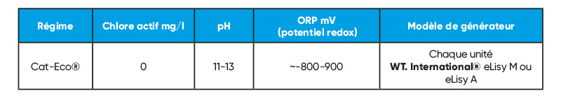 Le système WT.International® recueille l’eau du réseau qui se combine avec le sel, la solution saline traverse le réacteur générant deux produits qui sont réinjectés dans le réseau à travers une pompe.